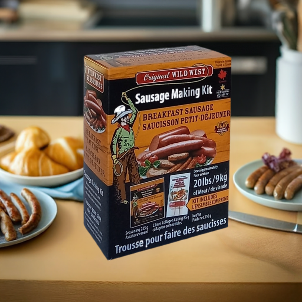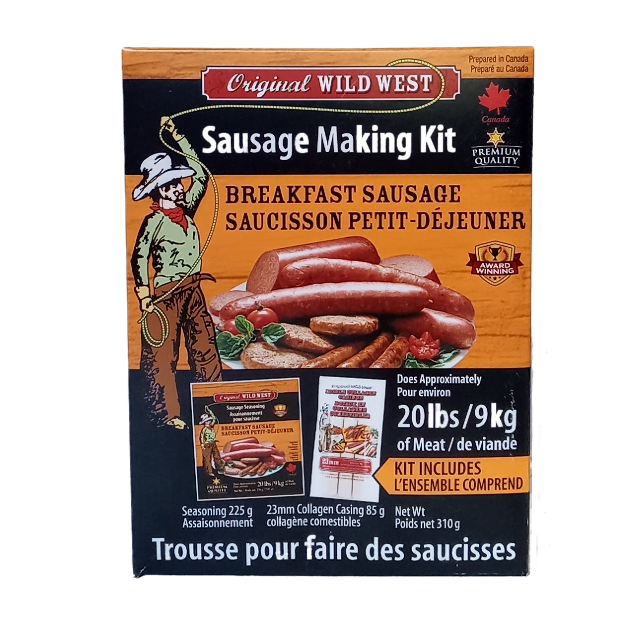 - Kit contains 225 grams of seasoning and 3 strands of 23 mm collagen casings