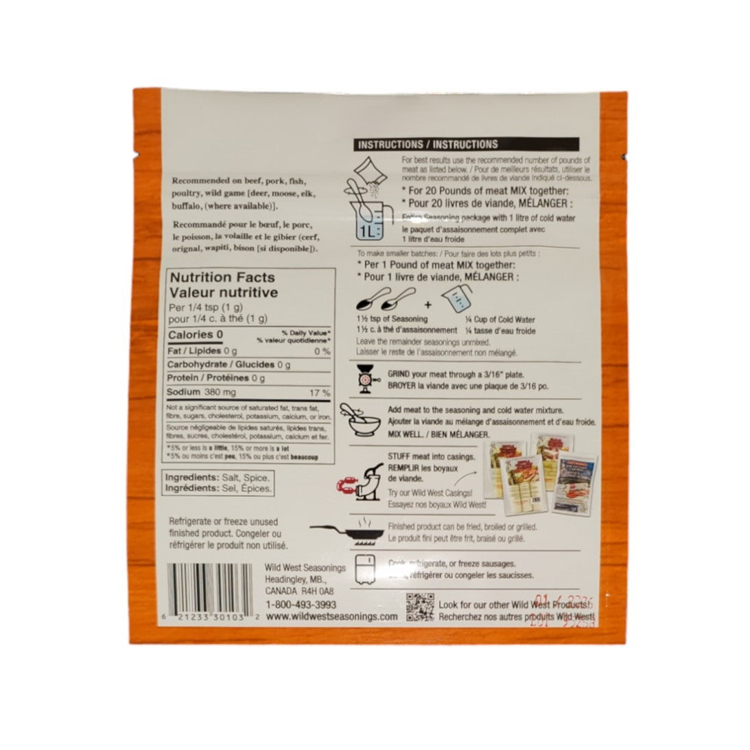 - Each package will prepare approximately 20 lbs/9 kg of meat