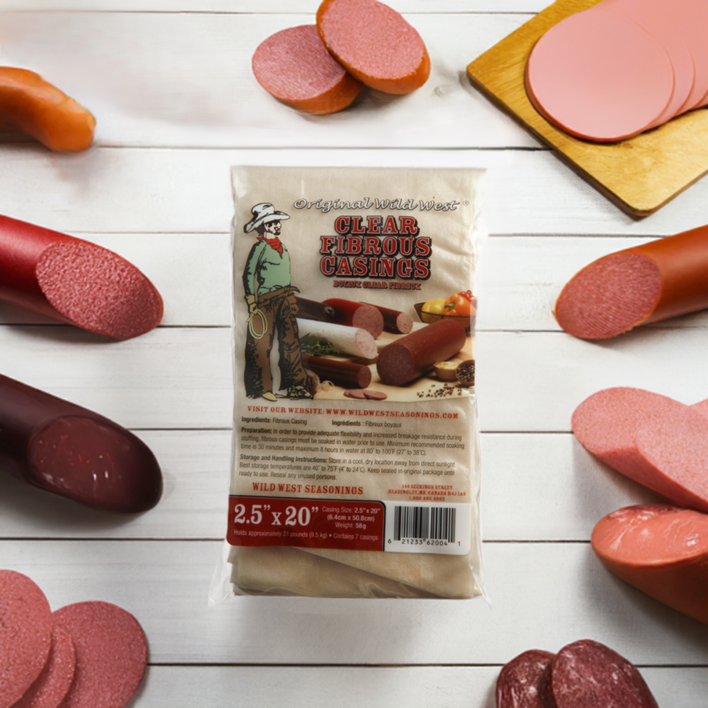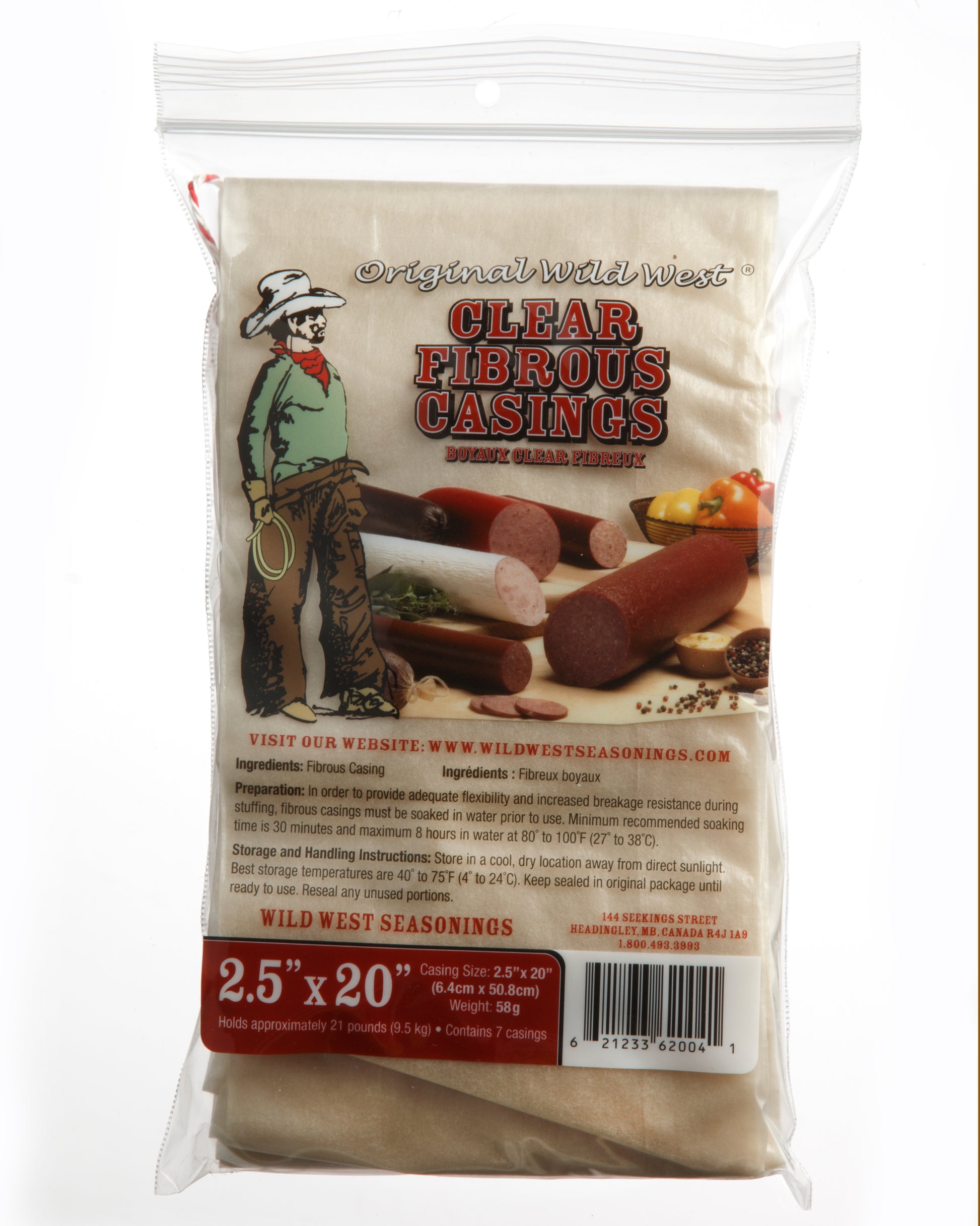 - Each package contains 7 clear fibrous casings and does 20lbs/9kg of sausage