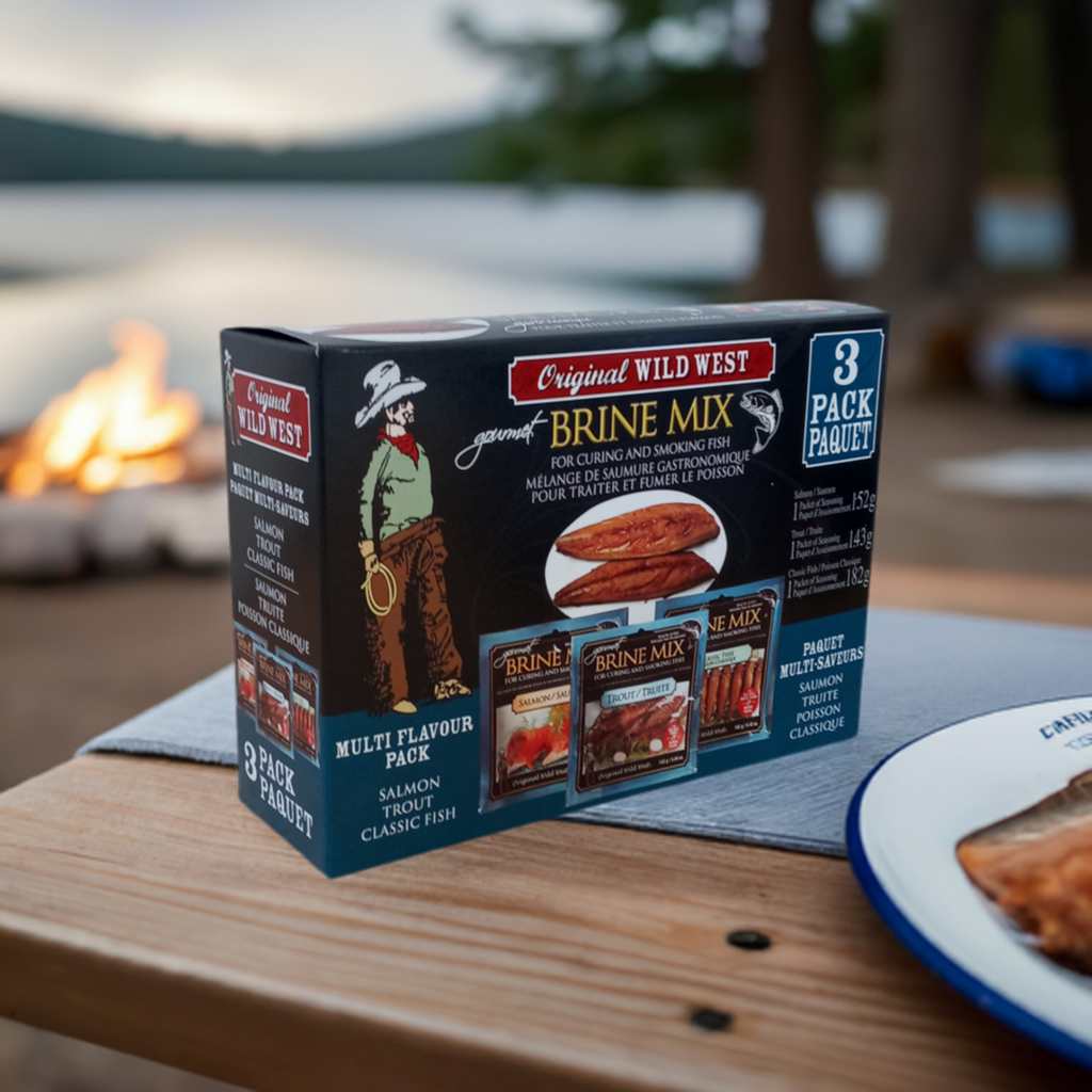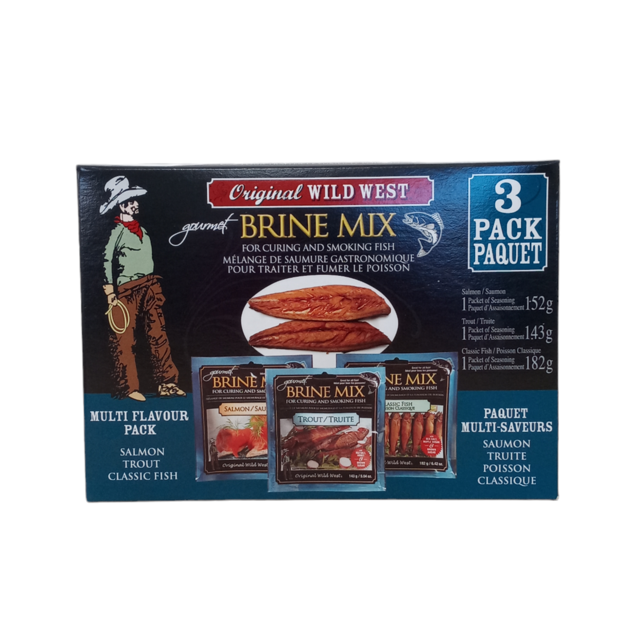 Our Gourmet Fish Brine Mix Multi Pack includes 3 package of seasonings for curing and smoking fish. Flavors included are Salmon, Trout, and Classic Fish Mix.