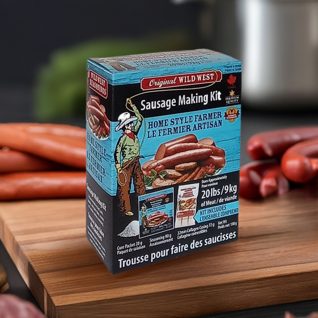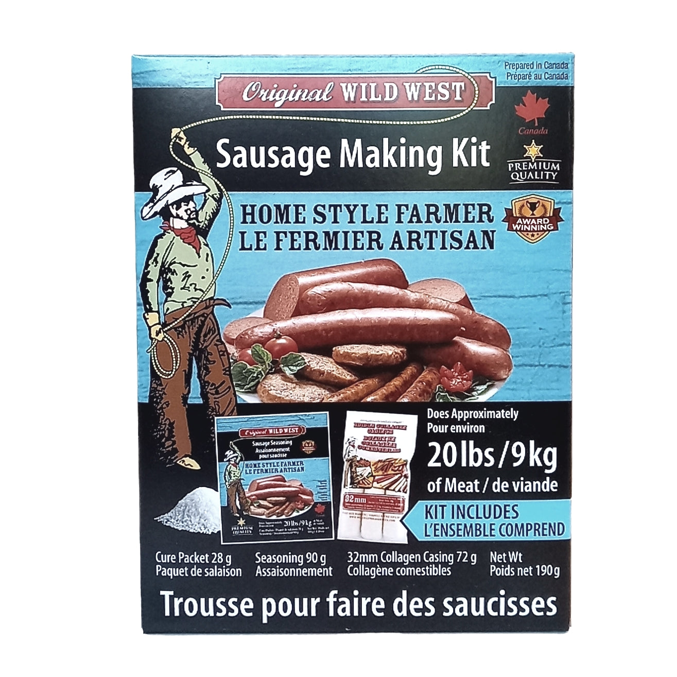 - Kit contains 90 grams of seasoning, 28 gram cure package and 3 strands of 32 mm collagen casings