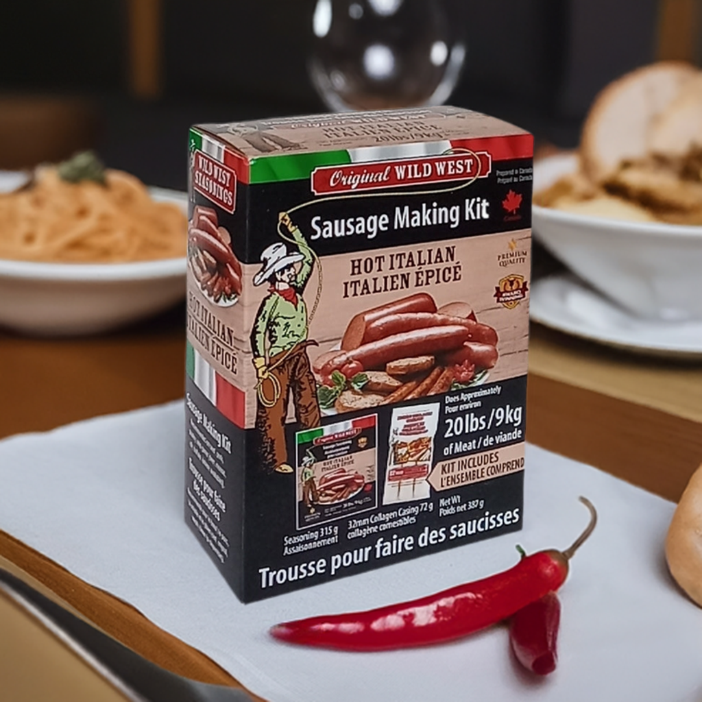 - Kit contains 315 grams of seasoning and 3 strands of 32 mm collagen casings